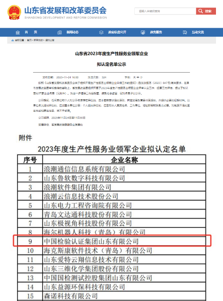 11月,山东省发展和改革委员会(以下简称“山东省发改委”)发布了山东省2023年度生产性服务业领军企业拟认定名单,山东公司成功入围。对于入选生产性服务业领军企业的单位,山东省发改委将给予研发投入补助等一系列政策支持,鼓励入选企业大力培育引进高层次管理人才和高技能人才。