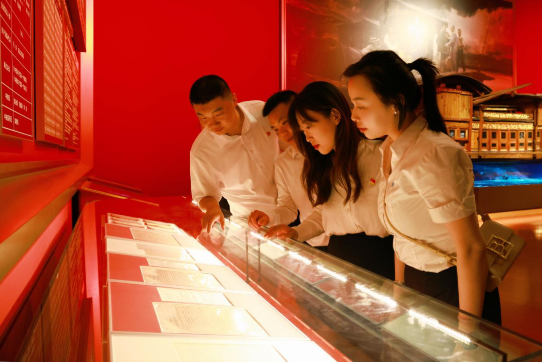 党的历史是最生动、最有说服力的教科书。走入展馆,由100块漆板拼接而成600平方米的《长城颂》巨幅漆画扑面而来,壮丽雄浑、震撼人心。中国共产党历史展览馆全面展示了我党团结带领人民在百年奋斗中开辟的伟大道路、建立的伟大功业、铸就的伟大精神、积累的宝贵经验。挂职干部们在参观学习中近距离感受了中国共产党百年来筚路蓝缕、顽强奋斗的伟大历程,切实体会到红色政权来之不易、新中国来之不易、中国特色社会主义来之不易,深刻认识到,中国共产党为什么能,中国特色社会主义为什么好,归根到底是马克思主义行,是中国化时代化的马克思主义行。