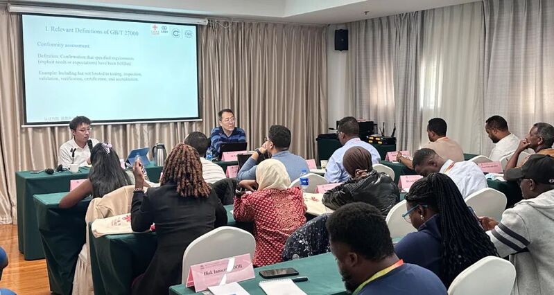 在专题授课环节,中国中检资深专家围绕标准制定、合格评定程序、国际标准体系发展趋势等议题进行系统讲解,课程内容紧密结合相关国家和地区在标准实施、产品认证和跨境贸易便利化中面临的实际问题,引发参训人员热烈讨论与积极互动。