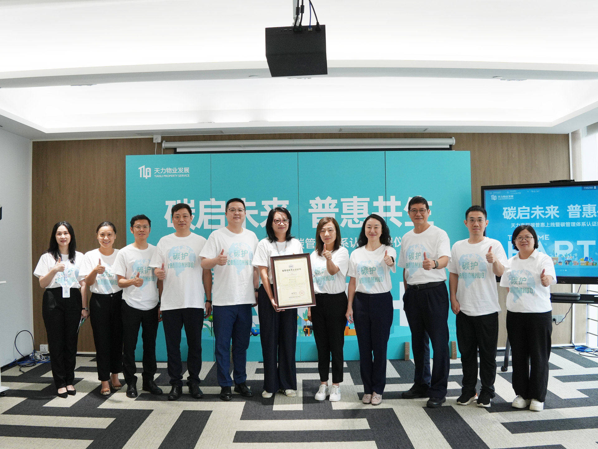 近日,中国中检广东公司(华南区域总部)助力广州天力物业发展(简称“天力物业”)获得CQC物业行业首张碳管理体系认证证书,应邀出席天力物业“碳启未来 普惠共生”主题仪式,见证物业行业首次实现碳普惠机制落地的里程碑时刻。
