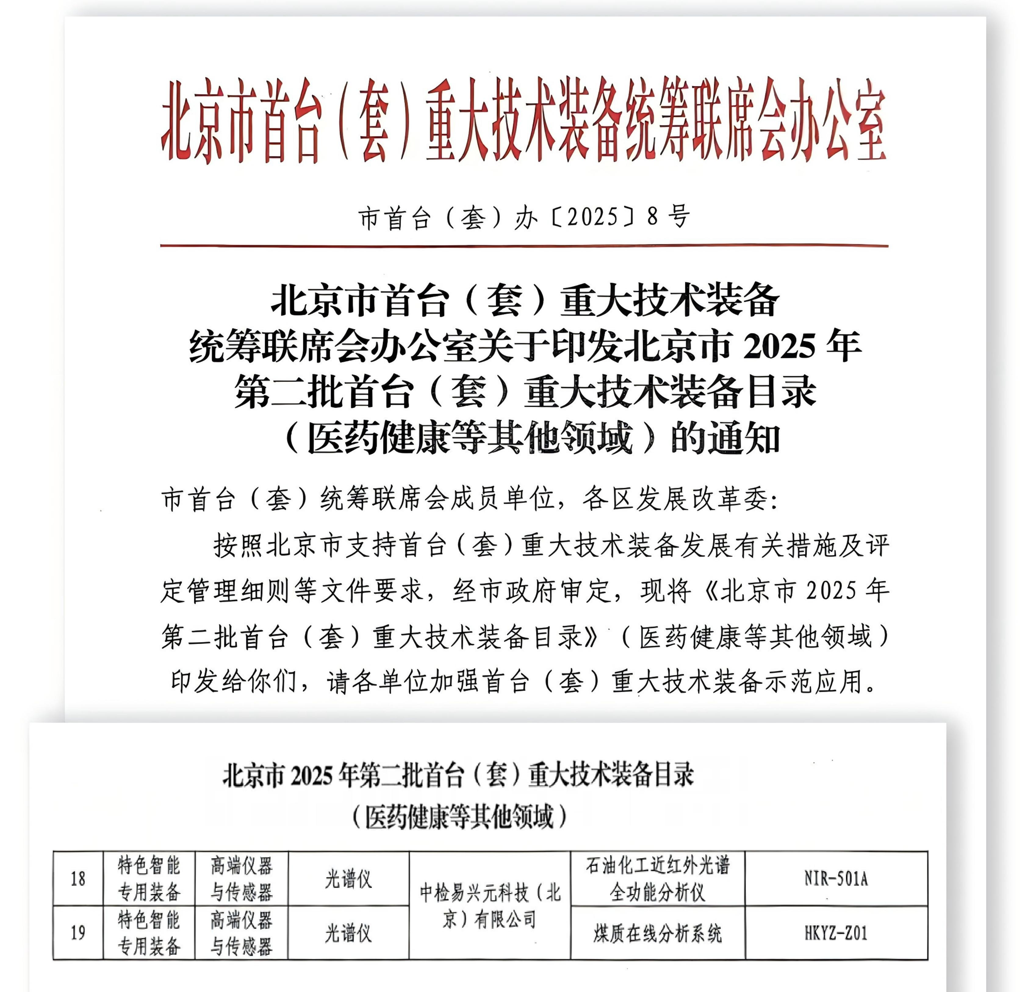近日,经严格专家评审与公示,中检易兴元科技(北京)有限公司(简称“中检易兴元”)自主研发的石油化工近红外光谱全功能分析仪与煤质在线分析系统成功入围认定名单,彰显了集团在高端检测装备研发领域的硬实力。