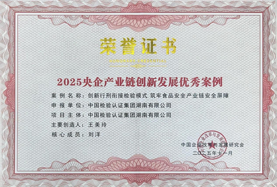 近日,由中国企业改革与发展研究会组织的2025央企产业链创新发展优秀案例评选结果正式揭晓。中国中检共有5项创新实践成果成功入选,彰显了集团在产业链协同创新、强链补链延链、保障产业安全等方面的卓越实力。