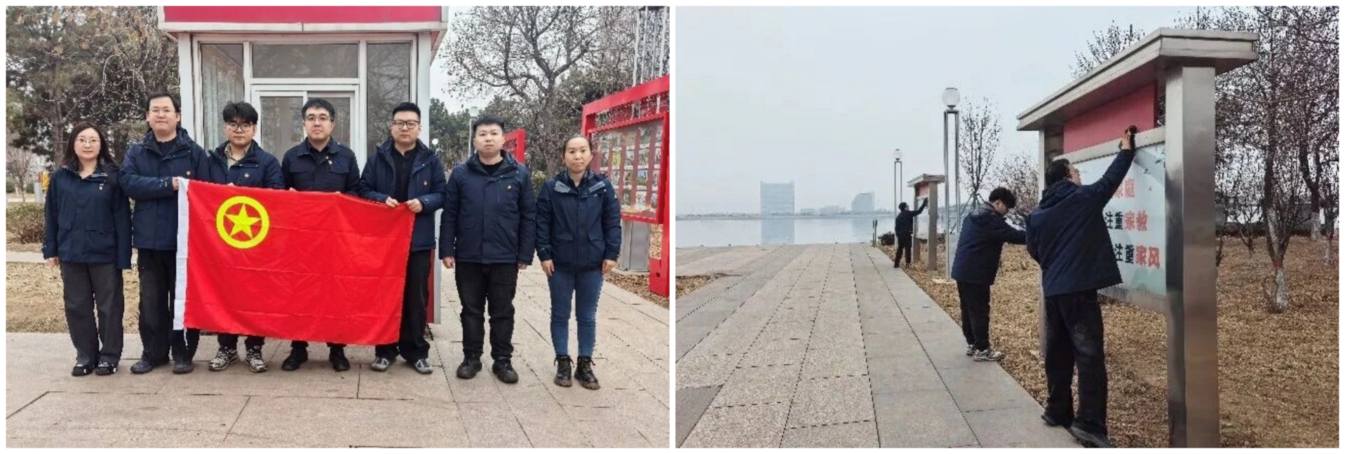 河北公司第二团支部在纳潮河公园开展志愿活动,以清理垃圾、擦拭公共设施等方式,践行绿色发展理念,传递志愿精神,展现央企青年担当,增强党团组织凝聚力。