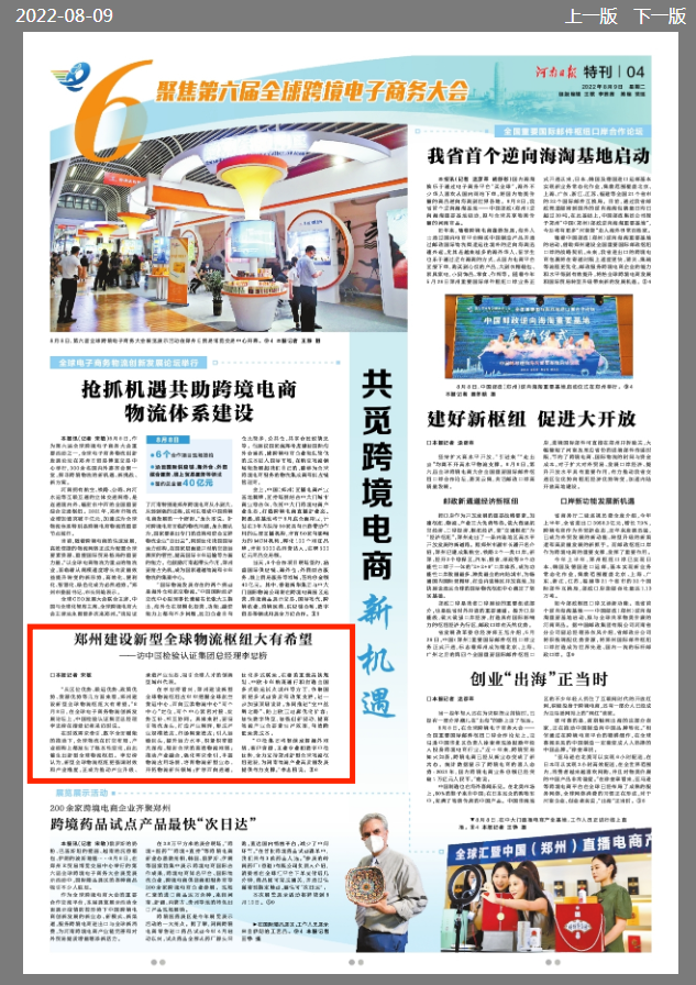“从区位优势、联运优势、政策优势、货源优势等几方面来看,郑州建设新型全球物流枢纽大有希望。”8月8日,在全球电子商务物流创新发展论坛上,中国检验认证集团总经理李忠榜在接受记者采访时说。