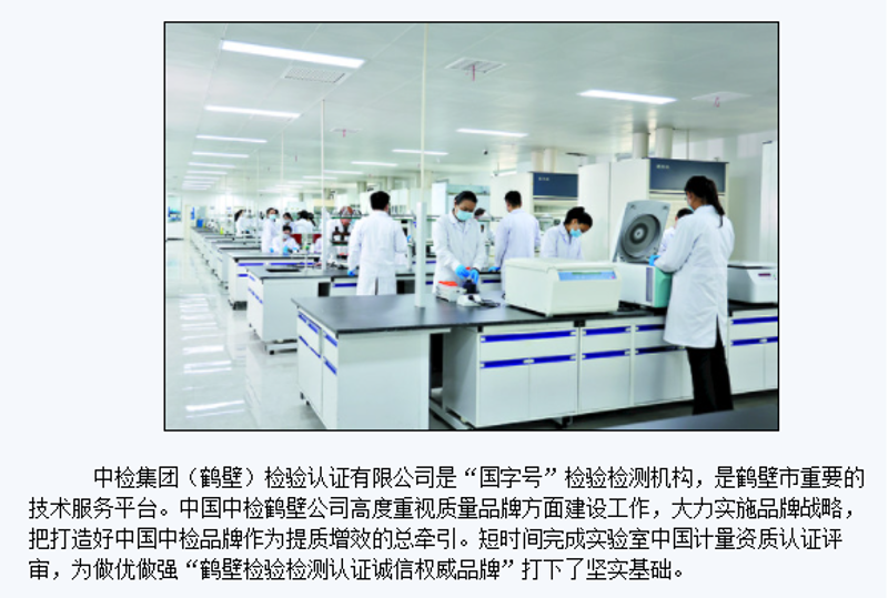 中检集团(鹤壁)检验认证有限公司是“国字号”检验检测机构,是鹤壁市重要的技术服务平台。中国中检鹤壁公司高度重视质量品牌方面建设工作,大力实施品牌战略,把打造好中国中检品牌作为提质增效的总牵引。短时间完成实验室中国计量资质认证评审,为做优做强“鹤壁检验检测认证诚信权威品牌”打下了坚实基础。