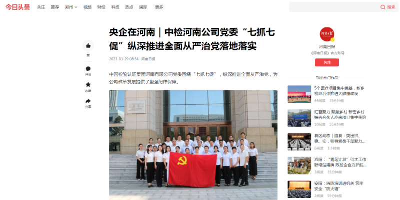 近日,中国中检河南公司党委围绕“七抓七促”,纵深推进全面从严治党,为公司改革发展提供了坚强纪律保障。