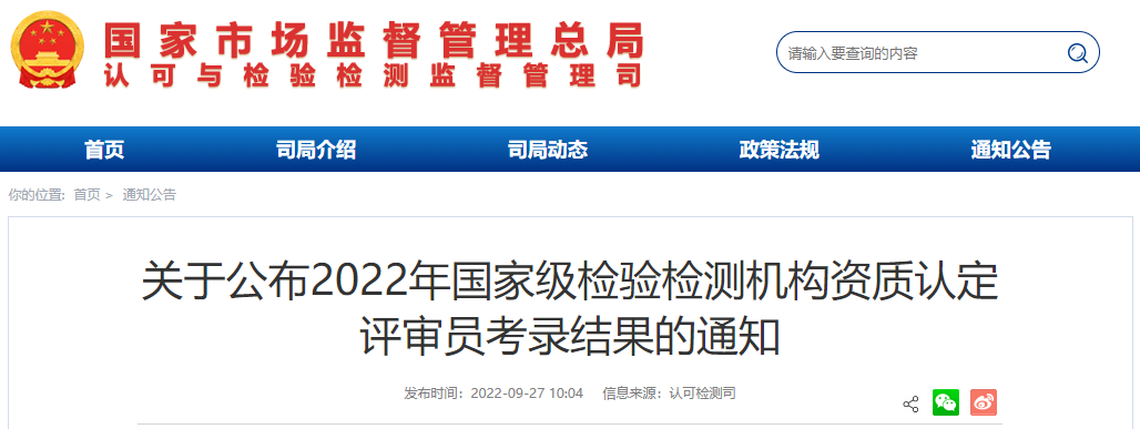 近期,市场监管总局公布2022年国家级检验检测机构资质认定评审员考录结果,中国中检共有7名专家成为首批进出口商品检验领域评审员。