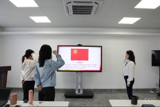 会议最后,在团支部书记的带领下团员重温入团誓词并庄严宣誓。