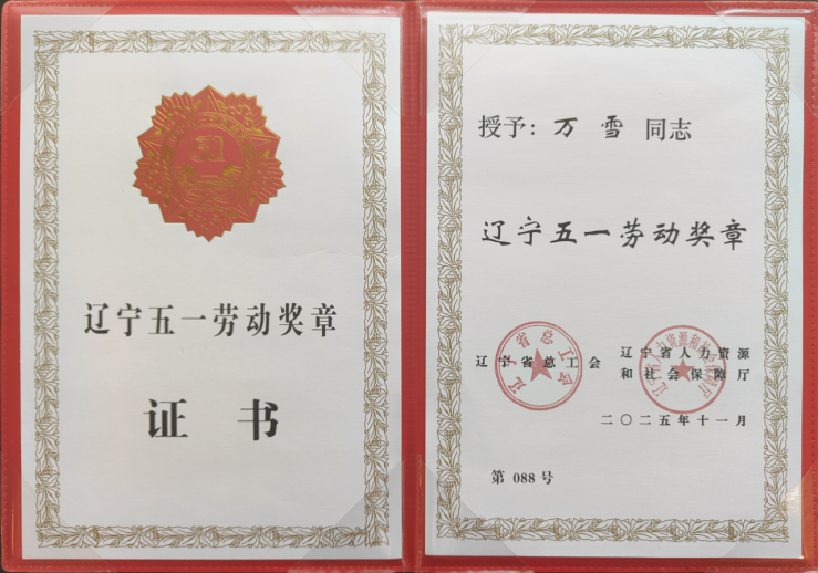 11月11日,2025年辽宁五一劳动奖表彰大会传来喜讯,中国中检辽宁公司万雪凭借在科技创新领域的卓越表现,荣获辽宁五一劳动奖章。