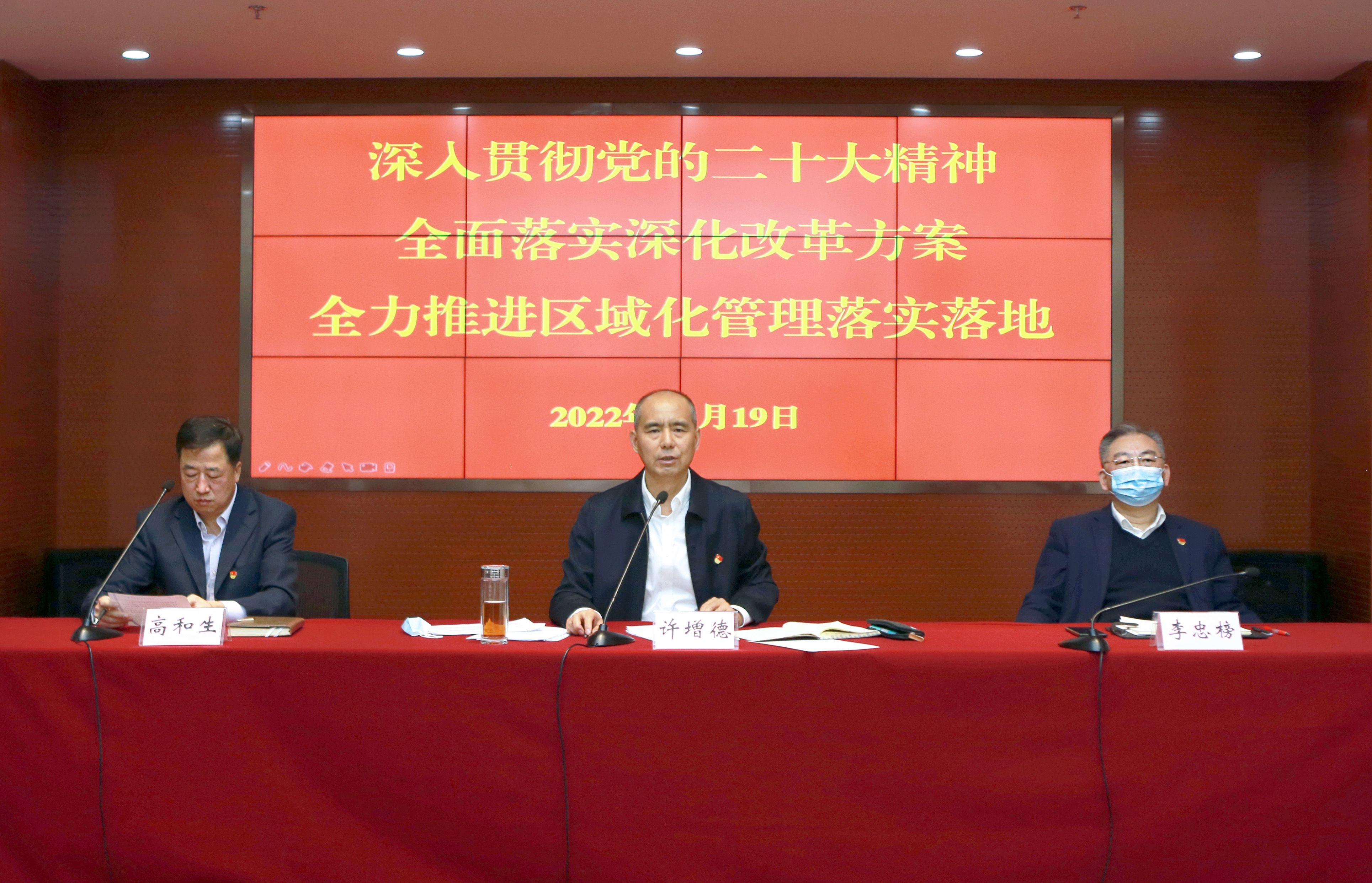 许增德要求,要加强组织领导、周密安排部署,迅速掀起学习宣传党的二十大报告的热潮。要加强党的领导党的建设,坚持以习近平新时代中国特色社会主义思想为指导,落实新时代党的建设总要求,以高质量党建引领区域高质量发展。要扎实推进集团改革方案落实落地,把改革方案作为集团各级领导干部的常备案头书,坚定改革信心和改革方向不动摇,统筹协调推进集团深化改革。要锚定各项经营指标和工作任务,全力以赴冲刺年度经营目标,守住疫情防范、安全生产风险底线,以优异成绩庆祝党的二十大胜利召开。
